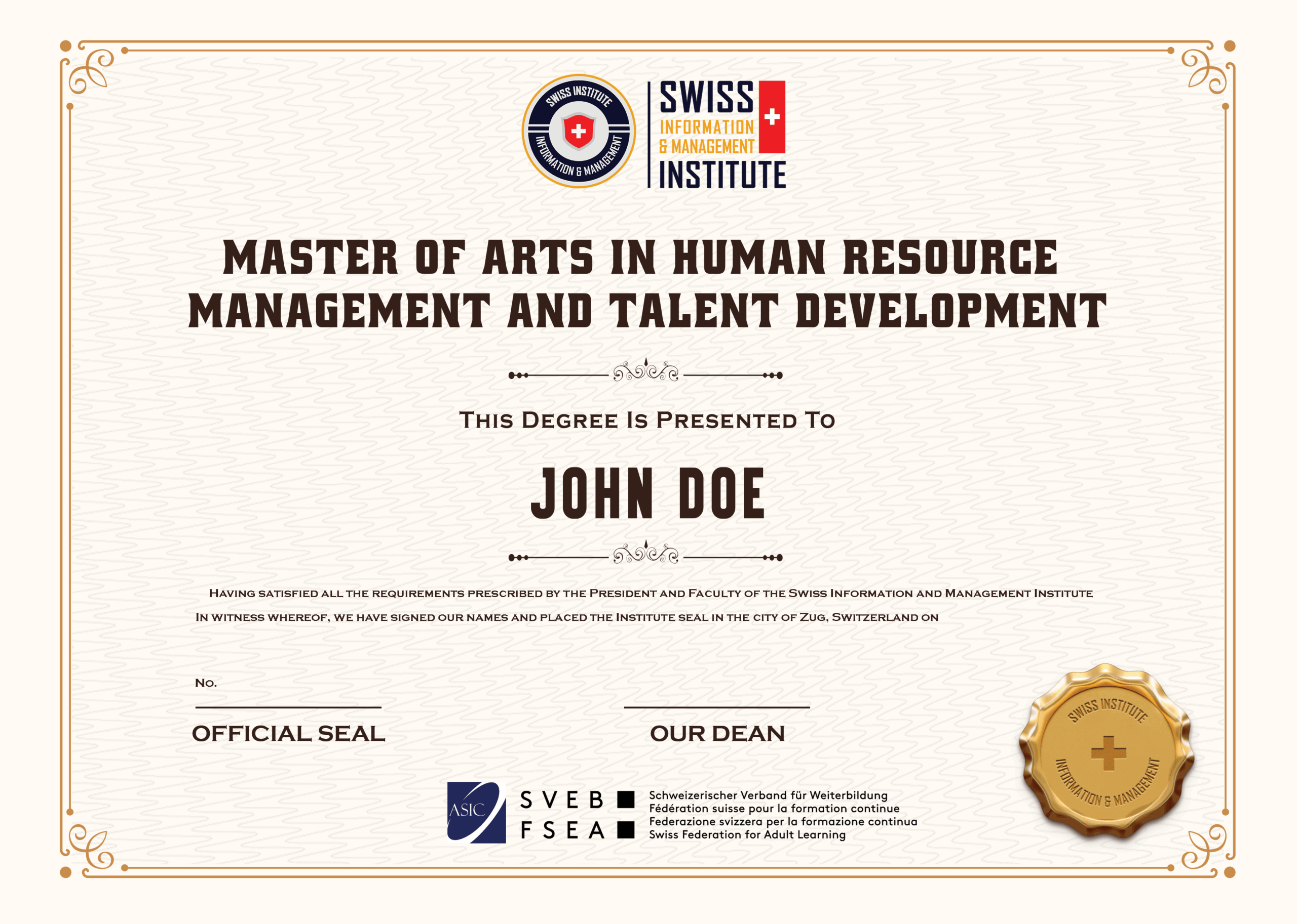 Master of Arts in Human Resource Management and Talent Development Degree from SIMI Swiss