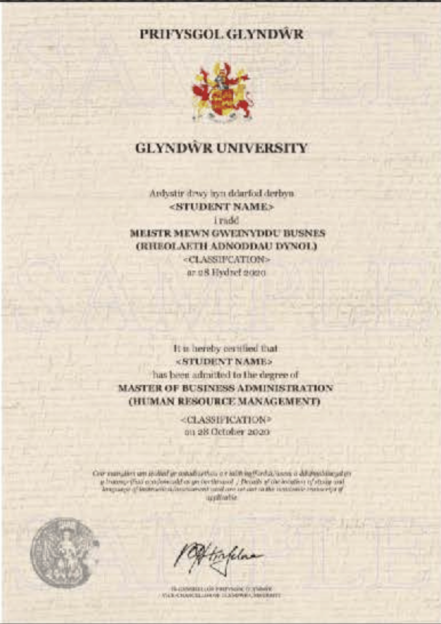 As the program is accredited and jointly recognized by partner universities, students who complete the mandatory modules may choose the transition phase with Wrexham University and receive an MBA in HRM awarded by Wrexham University.